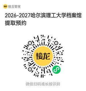 为方便广大师生及校友,尤其是身在外地的校友查询利用教学档案,提高哈尔滨理工大学档案馆服务质量和效率,提升档案利用的便捷性,让人民群众少跑腿,最大化的满足群众需求,结合档案业务工作实际,现启用微信小程序为广大校友辅助办理线上线下档案业务。请利用者微信扫码下图并填写《哈尔滨理工大学档案馆提取预约》。